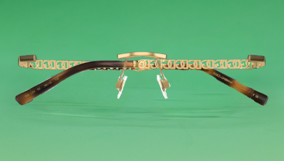 The Dolce & Gabbana DG1352 rimless eyeglasses feature a sleek and sophisticated design, perfect for those who appreciate minimalist elegance. The frame is highlighted by intricately detailed gold, rose, silver and copper temples, showcasing Dolce & Gabbana's signature luxurious style.