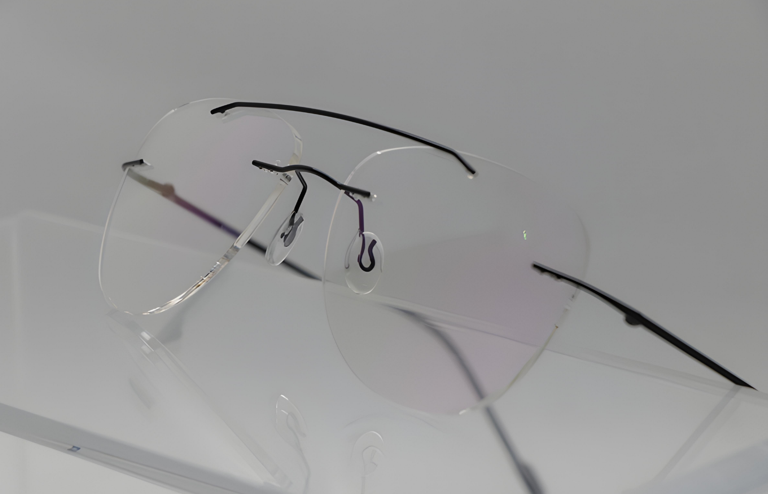 This lightweight titanium rimless frame features a unique double bridge design, offering exceptional durability, flexibility, and modern style for ultimate comfort.
