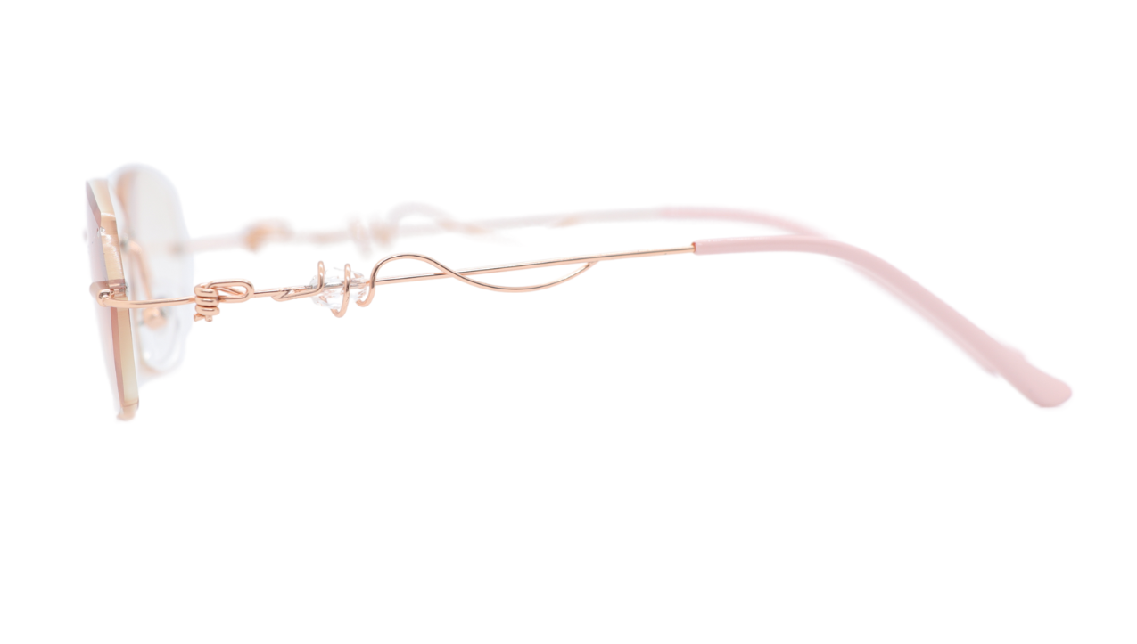 These exquisite rimless eyeglasses offer a unique blend of artistry and elegance, highlighted by intricately designed temples with a twisted, serpentine pattern. Crafted with precision, these frames provide a lightweight and comfortable fit, perfect for all-day wear.