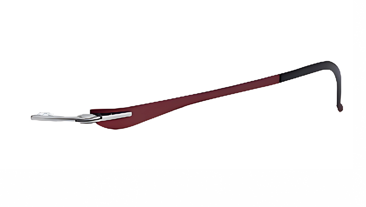 Sleek titanium temple with sculpted dual-tone design and modern tapered silhouette.
