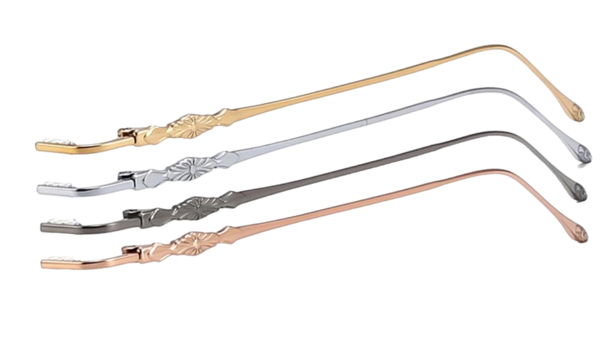 Introducing the TitanLite Refined frames, a perfect blend of elegance and durability. Crafted from premium titanium, these rimless eyeglasses offer a sophisticated, lightweight design that is ideal for everyday wear. The flexible handles provide a comfortable, secure fit, adapting to various face shapes. With a range of colors available, including gold, gunmetal, silver, and bronze, these glasses can be customized in over 80 shapes, making them suitable for any style preference.