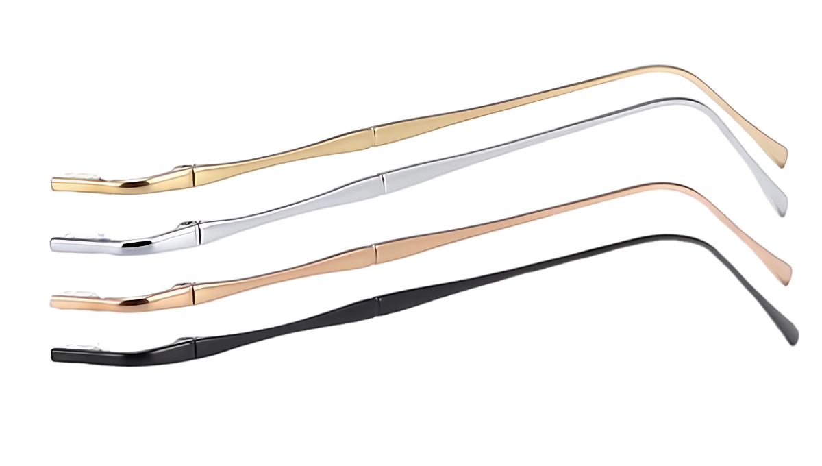 Experience the blend of sophistication and durability with TitanLite Aura frames. Crafted from high-quality titanium, these rimless eyeglasses offer an ultra-lightweight feel, perfect for all-day comfort. The flexible handles provide a secure fit, making them adaptable to various face shapes. The minimalist design is available in a range of colors, including gold, bronze, silver, and black, offering versatility and elegance.