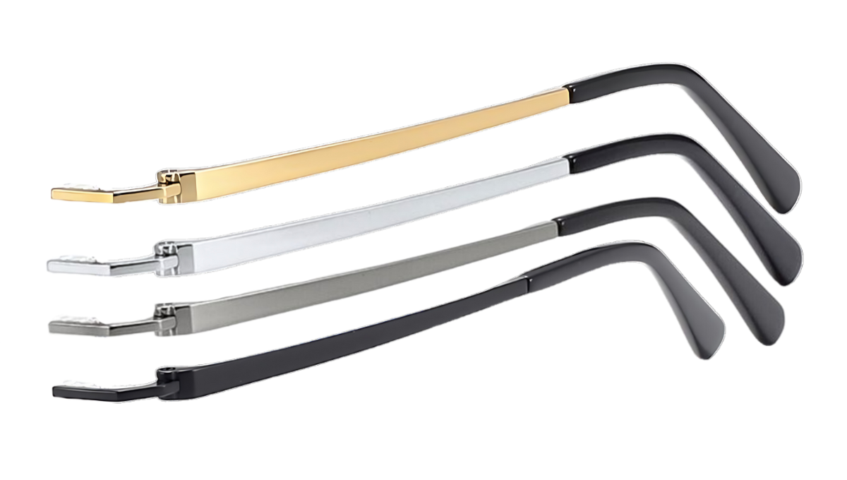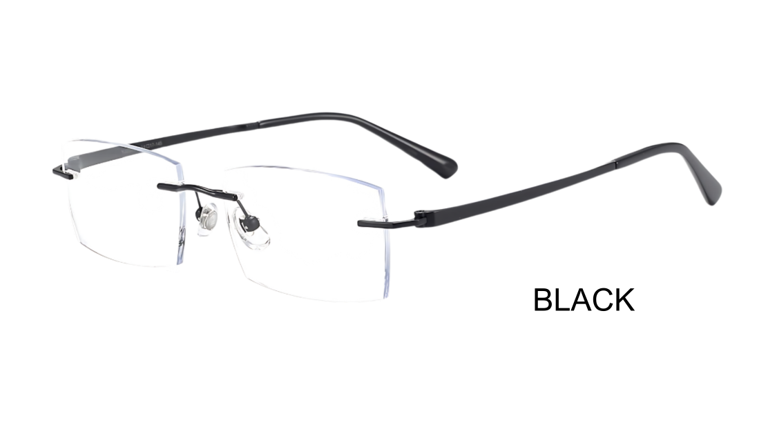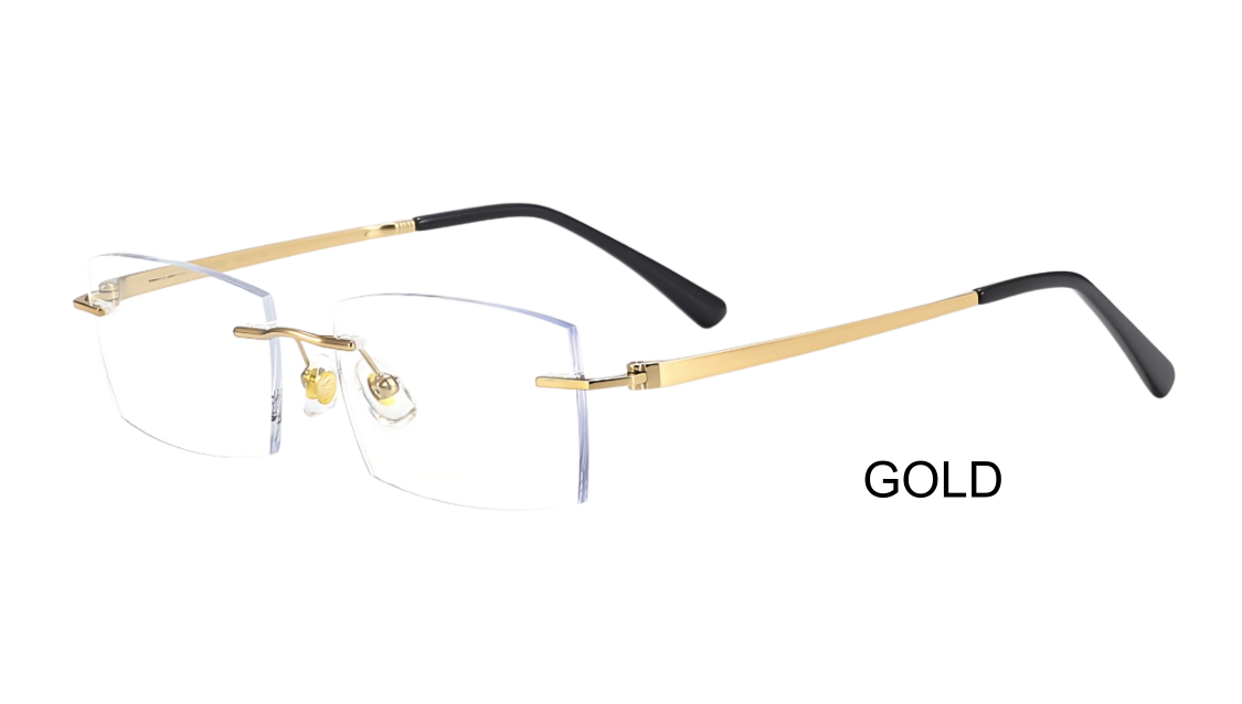The TitanLite Elegance frames are a testament to modern sophistication, with an emphasis on the sleek, minimalistic design of the temples. Crafted from high-quality titanium, these rimless eyeglasses offer a lightweight yet durable option for everyday wear. The temples are elegantly styled with a slender profile, featuring subtle, refined detailing that enhances the overall aesthetic. This frame design not only provides a comfortable fit but also exudes a contemporary elegance, making it a versatile choice for both men and women. Available in a range of colors, including gold, gunmetal, silver, and black, these frames are perfect for those who appreciate understated luxury and functional design.