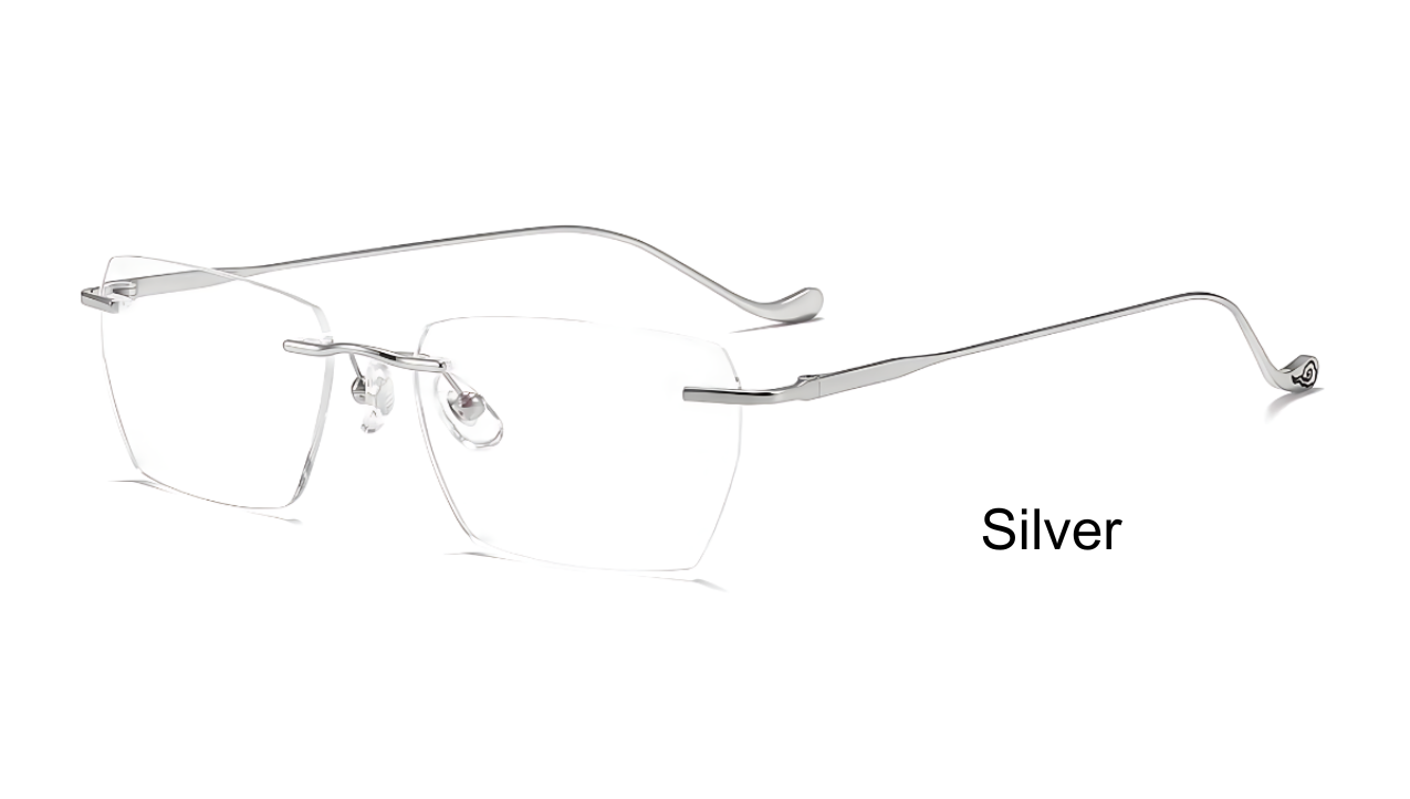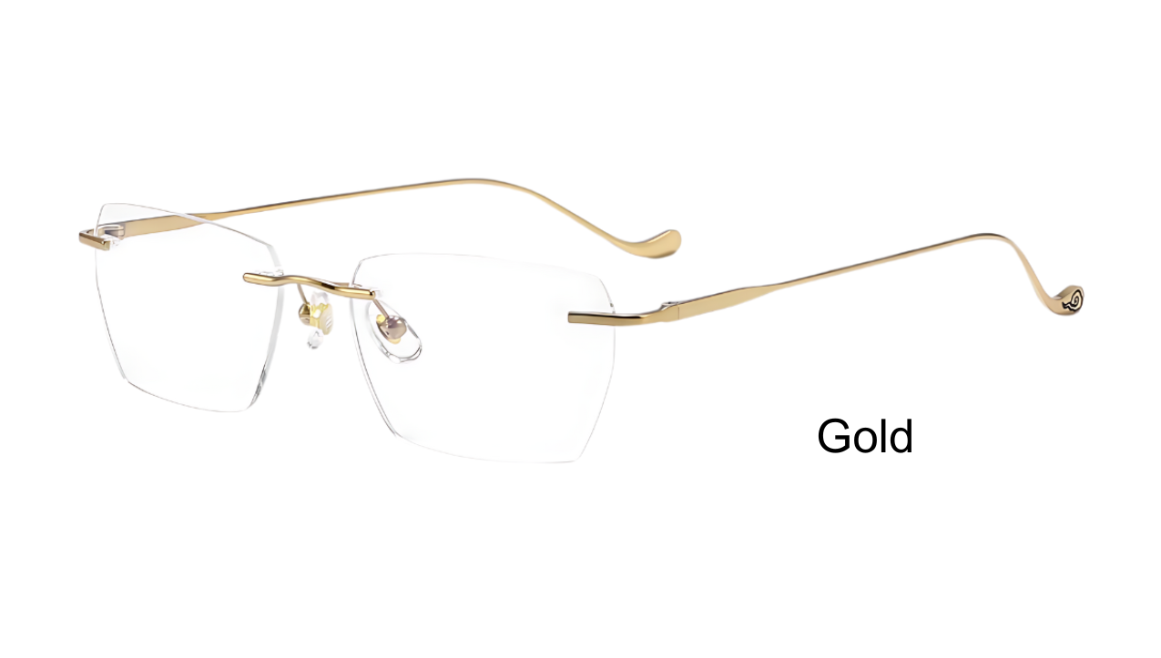 Experience the perfect blend of sophistication and innovation with our TitanSwirl rimless eyeglasses. The sleek titanium frame ensures durability while remaining incredibly lightweight, making these glasses a pleasure to wear all day. The temples feature an elegant swirl design that adds a touch of luxury and individuality to your look. These glasses are available in three stunning colors, allowing you to choose the one that best complements your style. Designed for both men and women, the frame can be customized to fit your unique needs with over 80 different lens shapes to choose from.