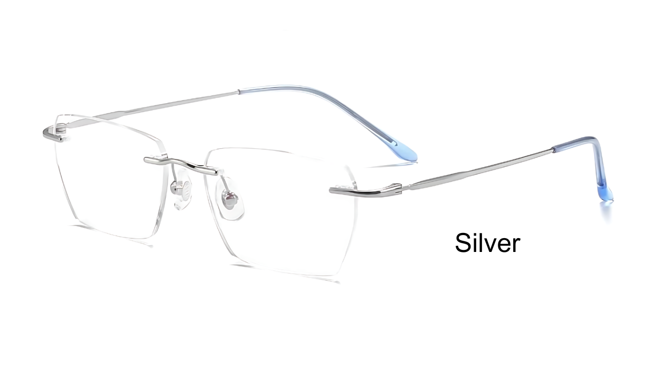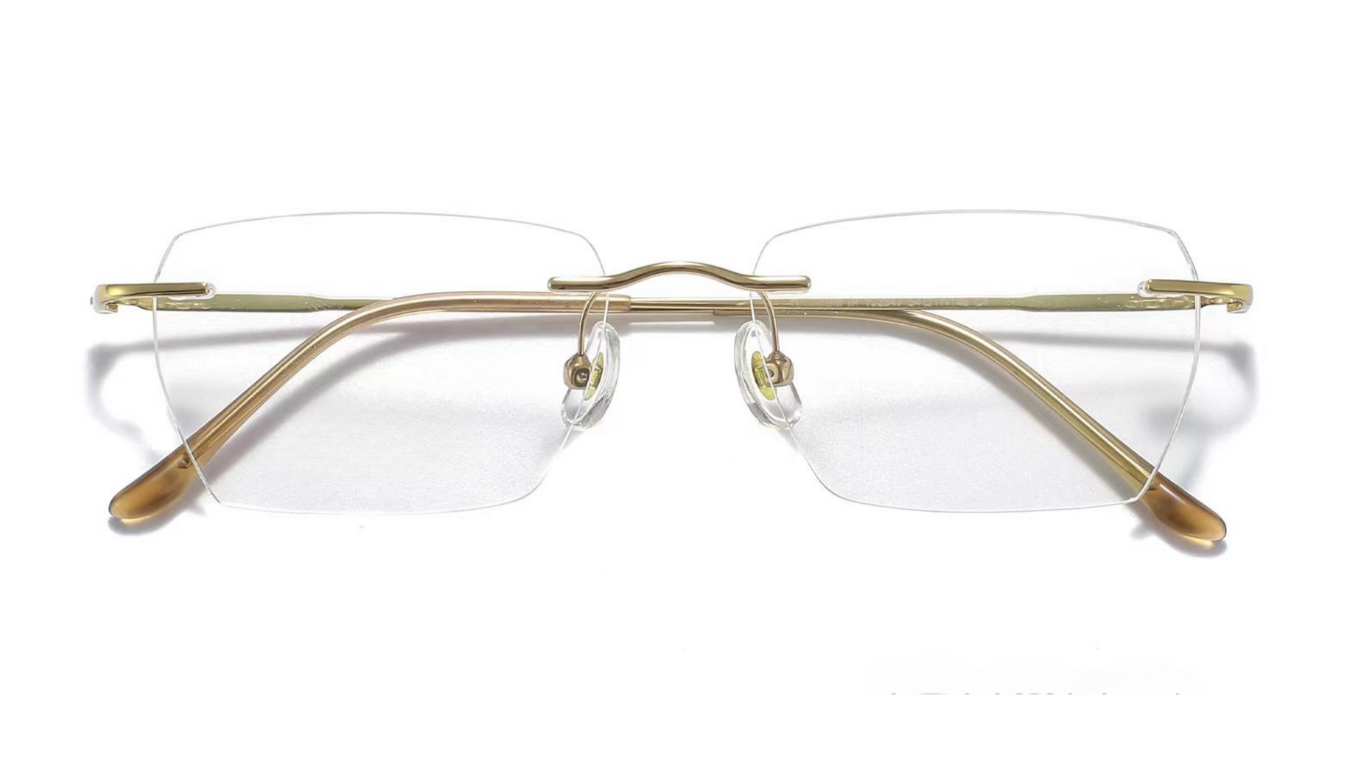Elevate your eyewear collection with this exquisitely crafted rimless frame, where elegance meets engineering. The minimalist design of the frame highlights its lightweight titanium construction, ensuring both durability and a barely-there feel. The standout feature of this frame is its uniquely designed temples, gracefully tapering into smooth, curved lines that embody a perfect blend of sophistication and modernity. Each temple is meticulously finished to offer a comfortable fit that gently hugs the contours of your face, making these eyeglasses an exceptional choice for those who value both style and comfort.